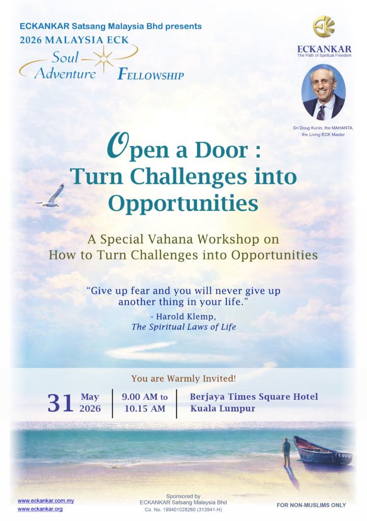 ECKANKAR Satsang Malaysia Bhd warmly invites you to the 2026 Malaysia ECK Soul Adventure Fellowship on 31 May 2026, 9:00 am – 5:30 pm at Berjaya Times Square Hotel, Kuala Lumpur.